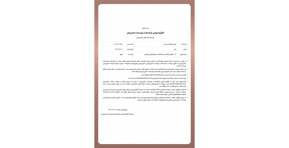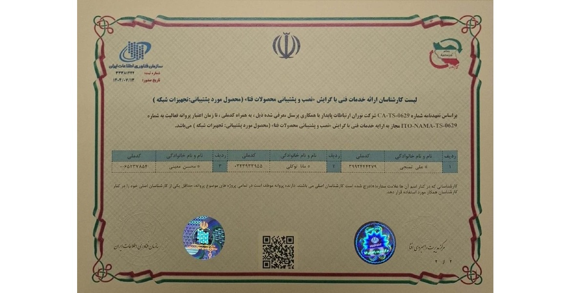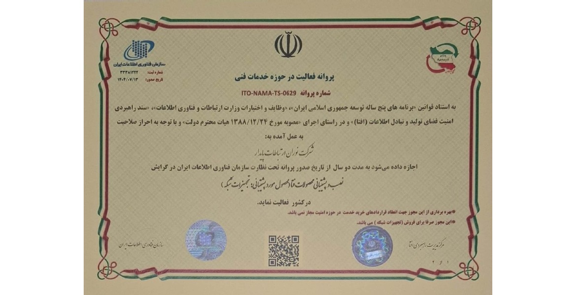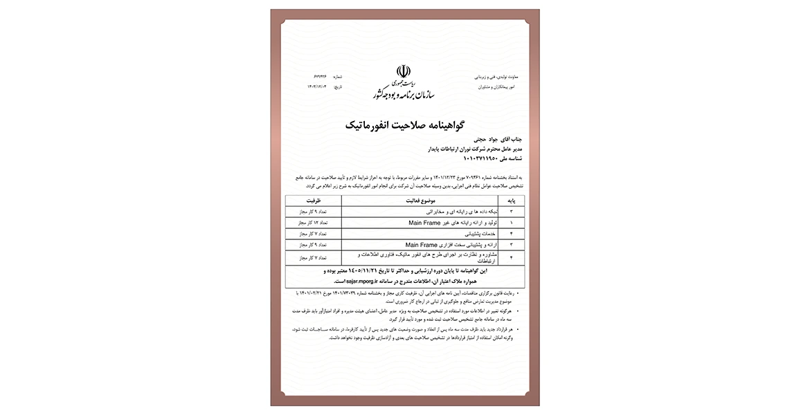 نوران ارتباطات پایدار موفق به کسب گواهی و رتبه بندی در گرید سه از شورای عالی انفورماتیک شد.