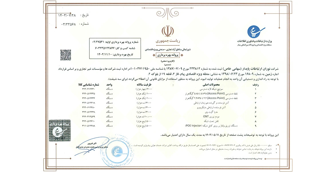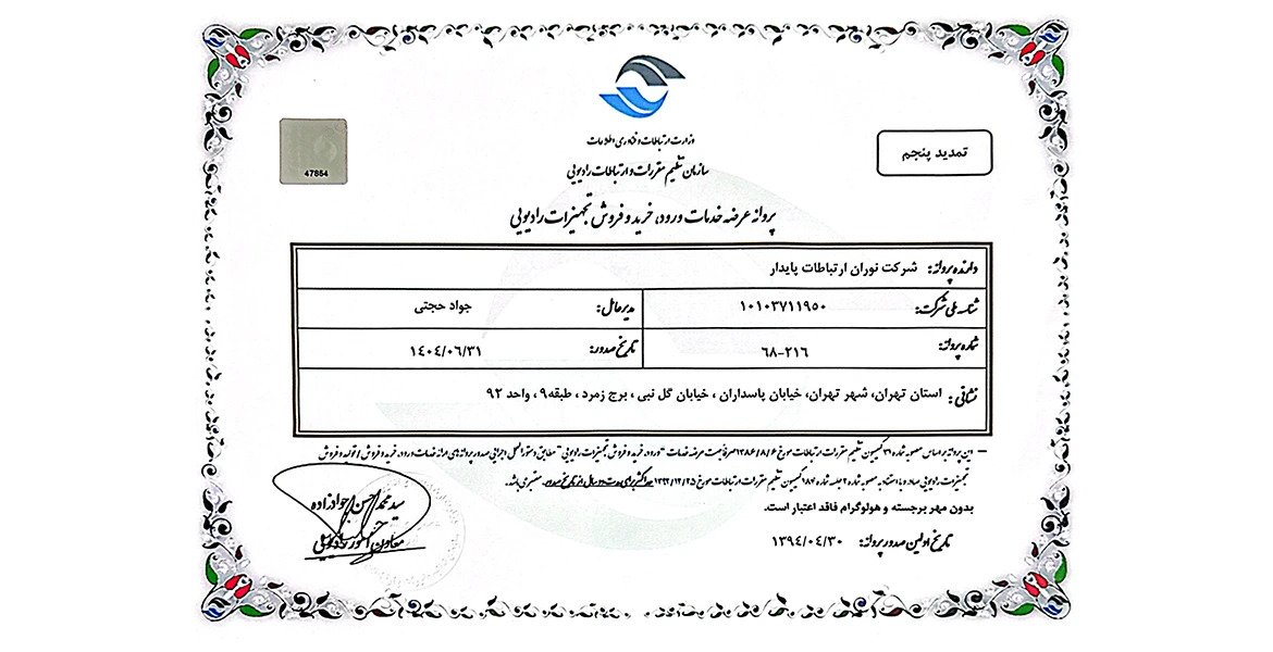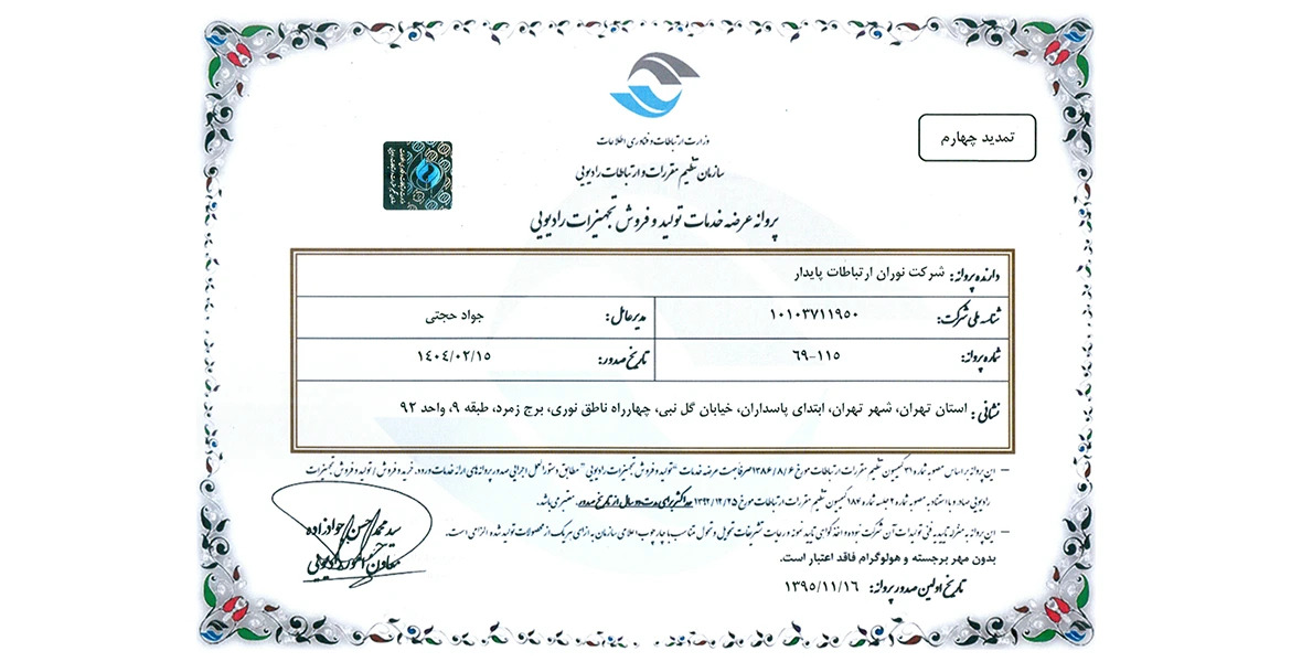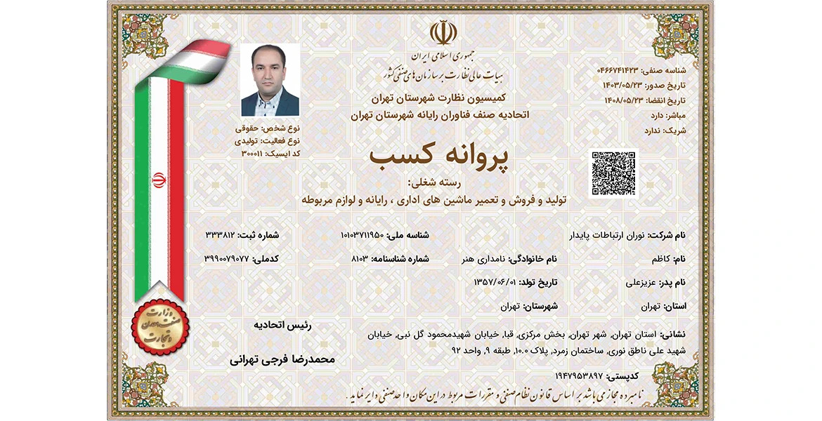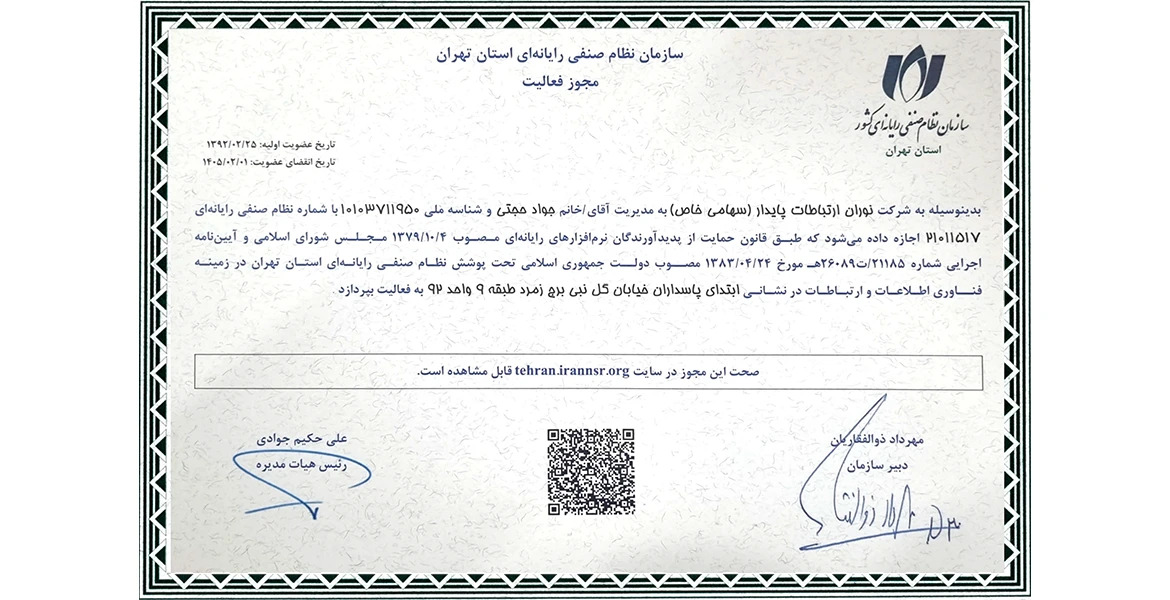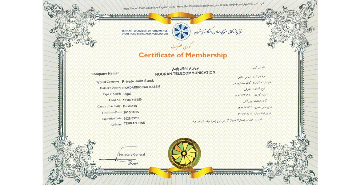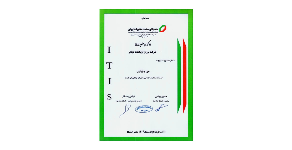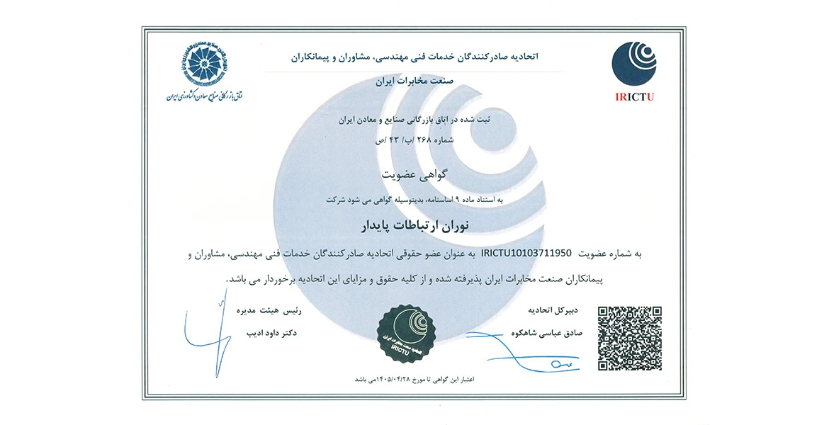 عضویت نوران ارتباطات پایدار و اخذ گواهینامه سندیکای صنعت مخابرات ایران